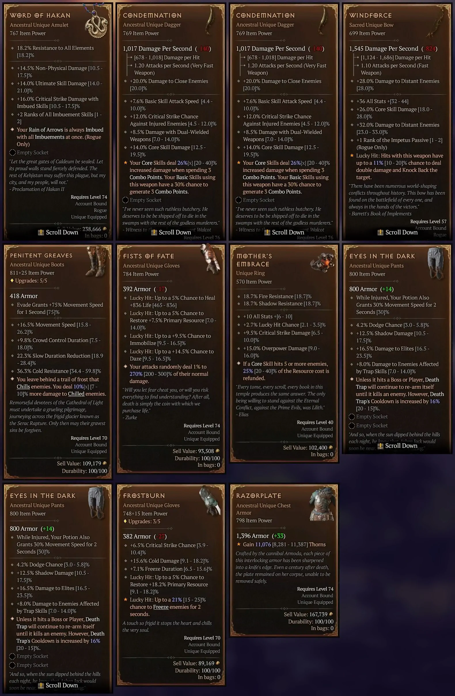 Share your items in a single image. DIABLO SNAPS creates mosaic pictures of your items.